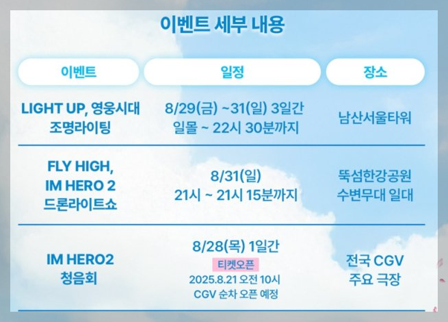 이번 전국 투어는 임영웅의 다양한 히트곡과 함께 팬들과의 소통을 강화하는 무대가 될 것으로 기대됩니다. 특히, 팬들과의 소통을 중시하는 임영웅의 공연은 매번 감동적이고 특별한 순간을 선사합니다. 콘서트 안내 사항은 공식sns로 업로드 확인하시기 바랍니다.