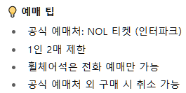 또한, 예매가 완료된 후에는 티켓 수령 방법과 공연 당일의 주차 정보, 입장 시간 등을 미리 확인하여 공연 당일에 불편함이 없도록 준비하는 것이 좋습니다.