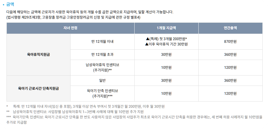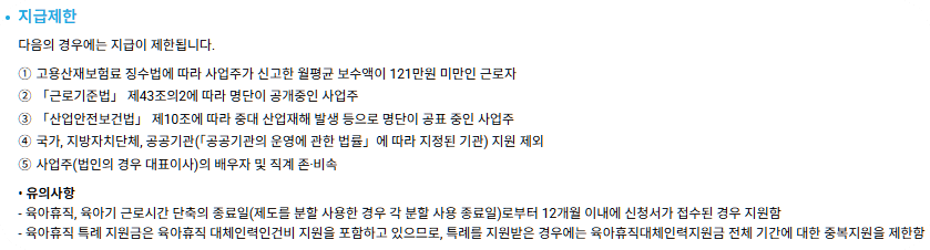 3. 육아휴직 사업주 지원금 금액 및 지급 제한