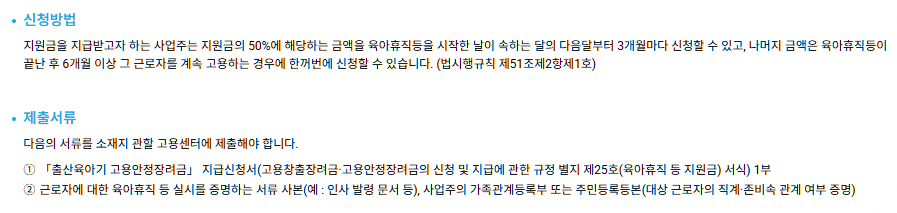 5. 육아휴직 사업주 지원금 제출서류 및 유의사항