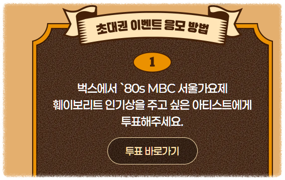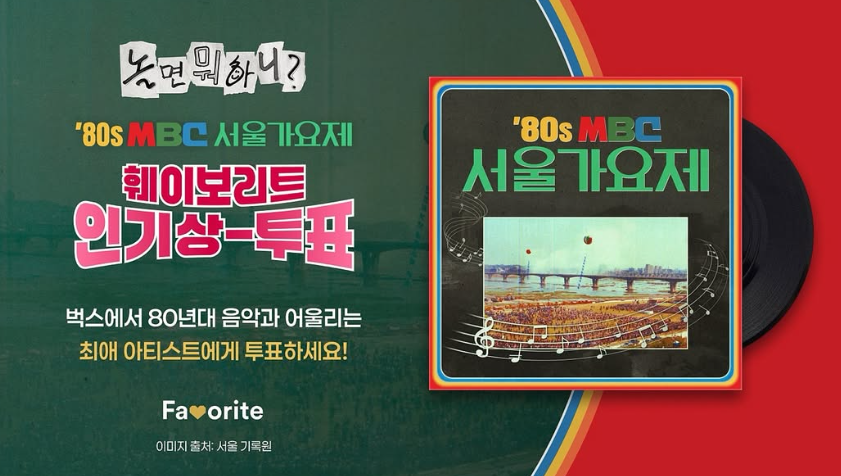 즉, 서울가요제 초대권 신청은 투표 참여가 필수 단계입니다. 투표 주제는 “80년대 곡을 가장 잘 소화할 아티스트는?”으로,
