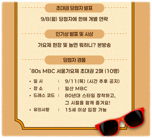 드레스 코드는 ‘80년대 스타일 장착’입니다. 그 시절 감성을 느끼며 공연에 참여하면 서울가요제 초대권을 더 뜻깊게 활용할 수 있습니다.
