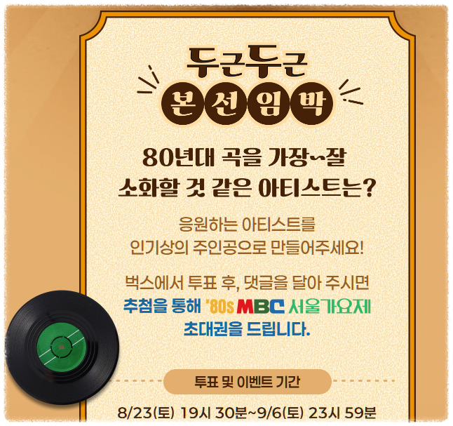 투표 주제는 “80년대 곡을 가장 잘 소화할 아티스트는?”이며, 투표 기간은 8월 23일 오후 7시 30분부터 9월 6일 오후 11시 59분까지입니다.