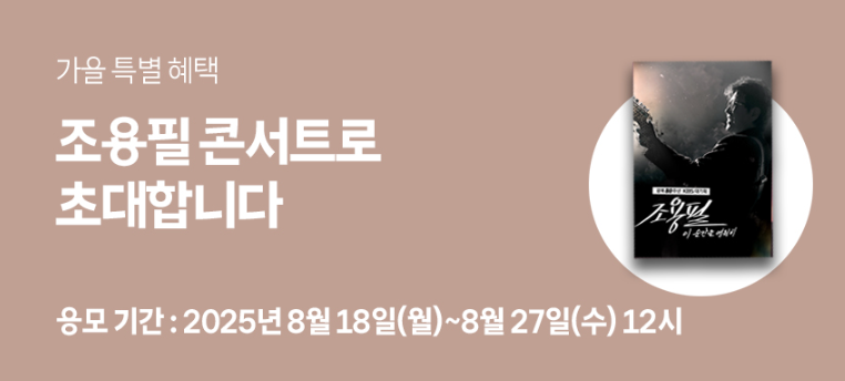 이번 조용필 콘서트 티켓 예매 때 매진으로 인해 기회를 놓쳤는데 부모님을 위해 한번 더 기회가 제공되어 저도 이벤트에 참여했답니다. 참여 안내에 대해서는 아래에 다른 혜택들과 함께 안내드리도록 하겠습니다.