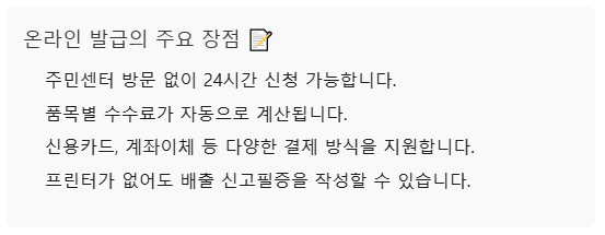 두 번째는 지역에 따라 제공될 수 있는 '대행 서비스 이용'을 고려해 볼 수 있습니다. 일부 지자체에서는 시민 편의를 위해 소량의 수수료를 받고 직접 수거를 대행해 주거나, 지역 내 특정 거점(주민센터, 편의점, 동사무소 등)에서 현장 발급을 돕는 경우가 있습니다. 해당 지역의 폐기물 관련 안내 페이지를 참고하거나 고객센터에 문의하여 가능한 방법을 확인해 보시면 좋습니다.