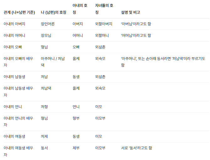 3. 결혼 후 남편 쪽 가족, 시댁 호칭 정리해 드립니다 (여성 입장)