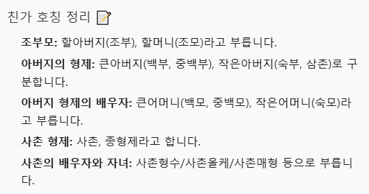지금까지 복잡하게 느껴졌던 가족 호칭들을 친가, 외가, 시댁, 친정, 그리고 촌수까지 상세하게 알아보았습니다.