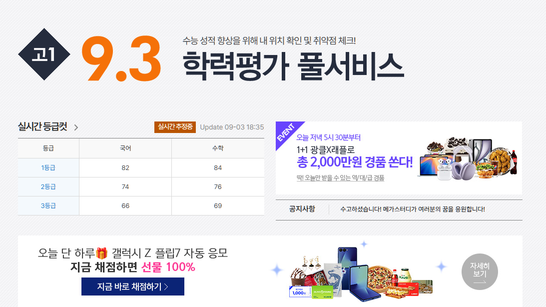 오늘 등급컷 확인과 채점까지 확인이 가능합니다.